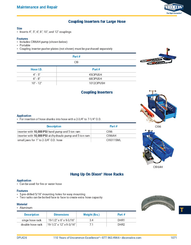 - For insertion of hose shanks into hose with a 2-3/4" to 7-1/4" OD