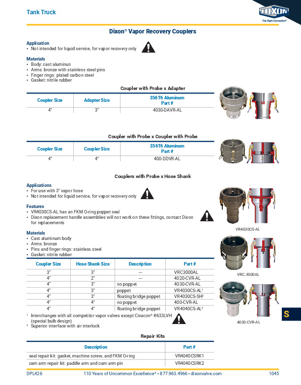 Not intended for liquid service, for vapor recovery only.