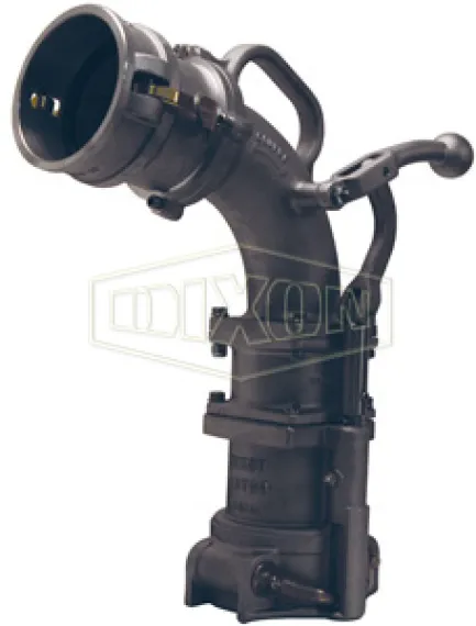 In many areas fuel stations are equipped with dual point tank connections, one connection is for the fuel delivery, and the other connection is for the vapor recovery connection. The vapor elbow bottom connection is connected to the fuel station on a ground tank vapor adapter and the top connection to the vapor hose, which returns the fuel vapors back to the tanker.