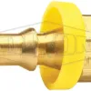 - 4. Place end of fitting against a flat object (bench, wall, etc.) and grip the hose one inch from end. Push with a steady force until end of hose is covered by yellow plastic cap.