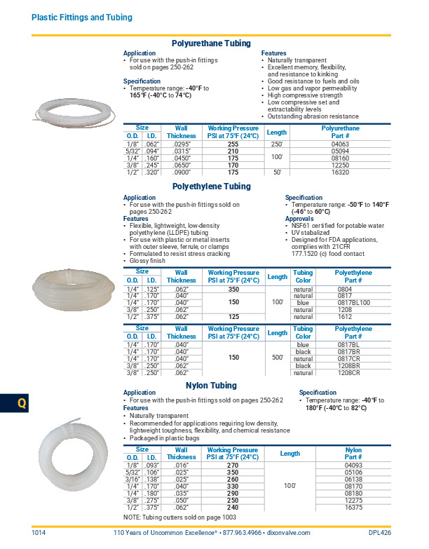 Working pressure given at 75°F