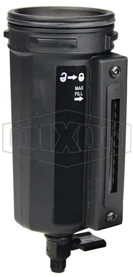 Metal bowl with high pressure liquid level indicator and 1/4 turn manual drain