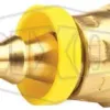4. Coloque el extremo de la conexión contra un objeto plano y sujétela manguera a una pulgada del extremo. Empuja con fuerza hasta que el extremo de la manguera esté cubierto por la tapa amarilla.
